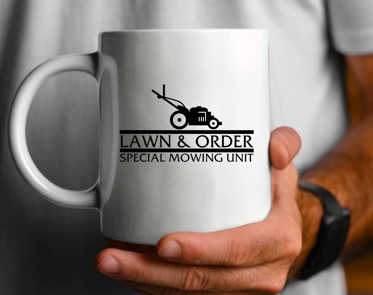Lawn & Order Special Mowing Unit - Funny Dad Coffee Mug Printed and Shipped in North Carolina Top Rack Dishwasher Safe. Double Sided Print.