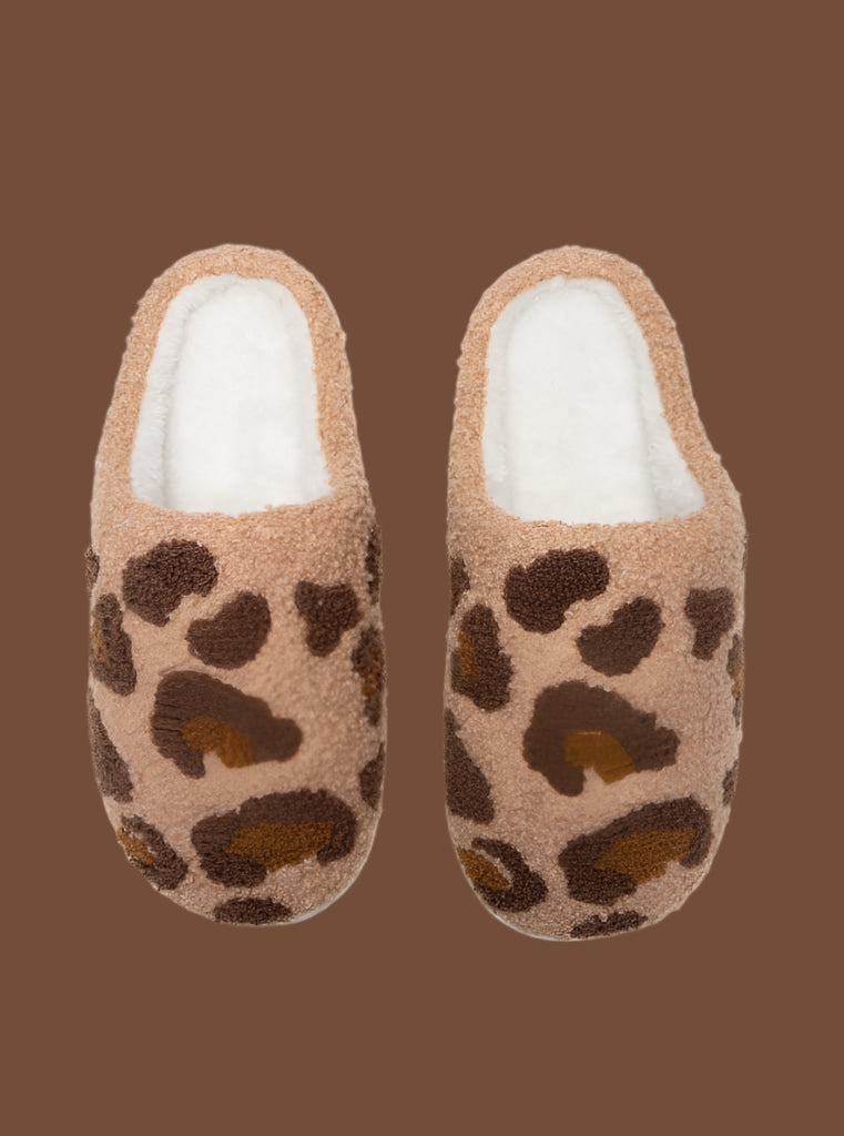 Leopard Print Slippers - Brown Indoor/Outdoor Women's Slippers with Non-Slip Sole by Living Royal